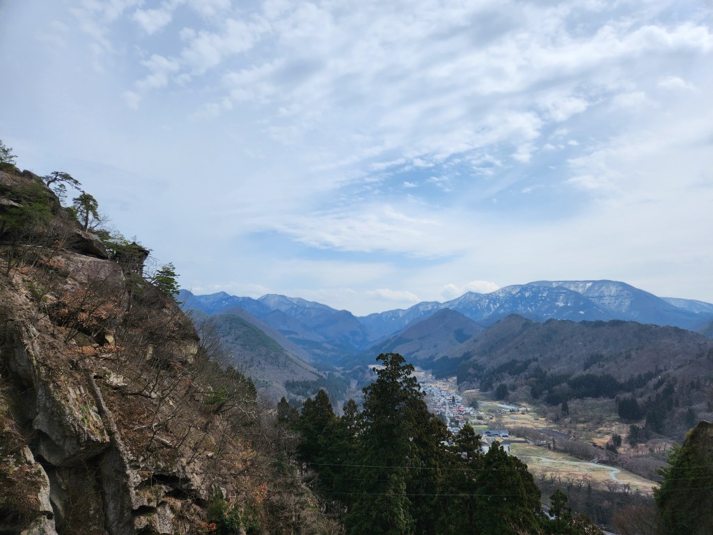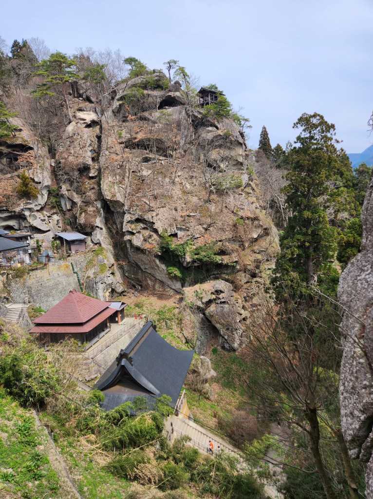 Yamadera is a small town built beneath A collection of temples and shrines, the oldest of which date back to 860 AD, all built along the side of a small mountain. After briefly walking through the town, we made our way to where the trail up the mountain began. The trail officially begins once you pass through a large stone Tori gate and has you passing by many altars and shrines between the long sets of stairs connecting the different temples. The entire trek reminded me a lot of climbing a mountain in Miyajima my first time in Japan, where every time you made it to a waypoint, you are motivated to climb higher by the beautiful views of the town below.