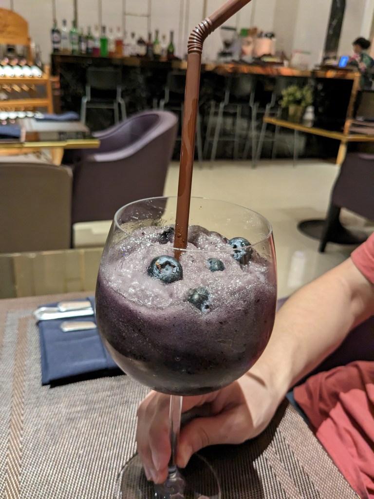 The staff at the hotel were very nice and the building interior itself was quite luxurious looking. While checking in, we were given a small snack consisting of some crackers and a sweet juice with a unique taste that I still have no idea as to what it was. Our room was also pretty nice, though its amenities were admittedly wasted on us, as we were leaving first thing in the morning. After dropping off our bags in the room, we went down to the hotel restaurant for a quick hite before we slept. I ordered a blueberry smoothie, which was much larger than I had imagined, while my dad ordered a beer. We also got some chicken wings and cheese sticks, which were also good, though not as noteable as the smoothie. Finally, we go to sleep, after another day full of too much transportation.