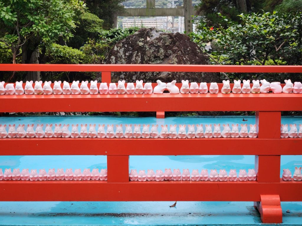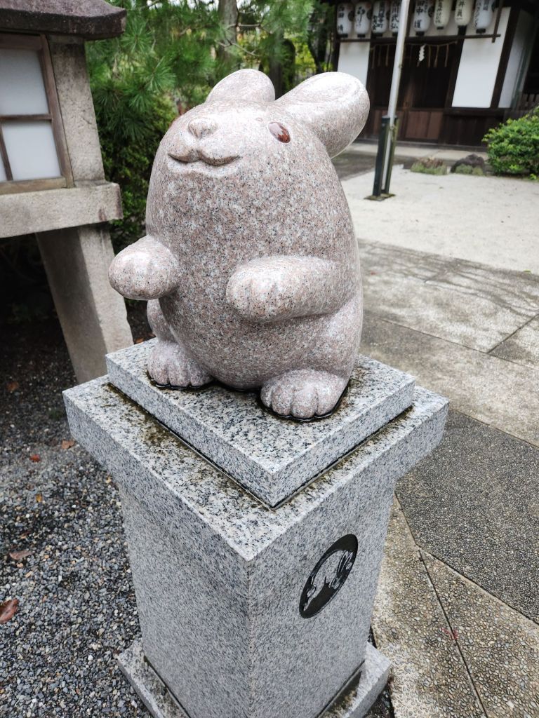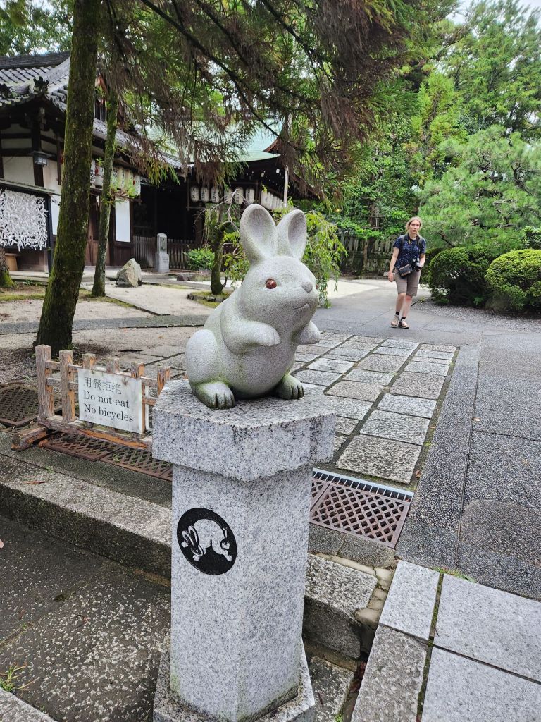 We also passed some other very large shrines and temples along the way, some of which have absolutely massive entrance gates or Tori gates leading the way in. After just over an hour of walking, we arrive at the small and quiet Okazaki shrine, otherwise known as the bunny shrine.